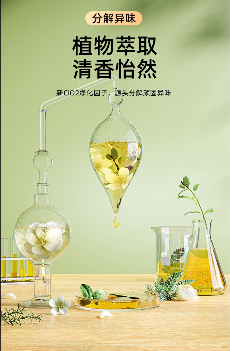 2. Bau terurai, mengekstrak faktor pembersihan CI02 yang wangi dan menyenangkan dari tumbuhan, dan mengurai bau degil di sumbernya