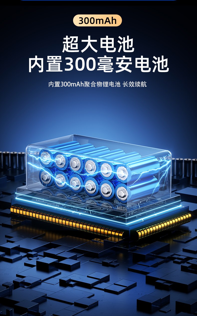 9.300mAh Bateri besar dengan bateri 300mAh terbina dalam dan bateri lithium polimer 500mAh untuk ketahanan tahan lama