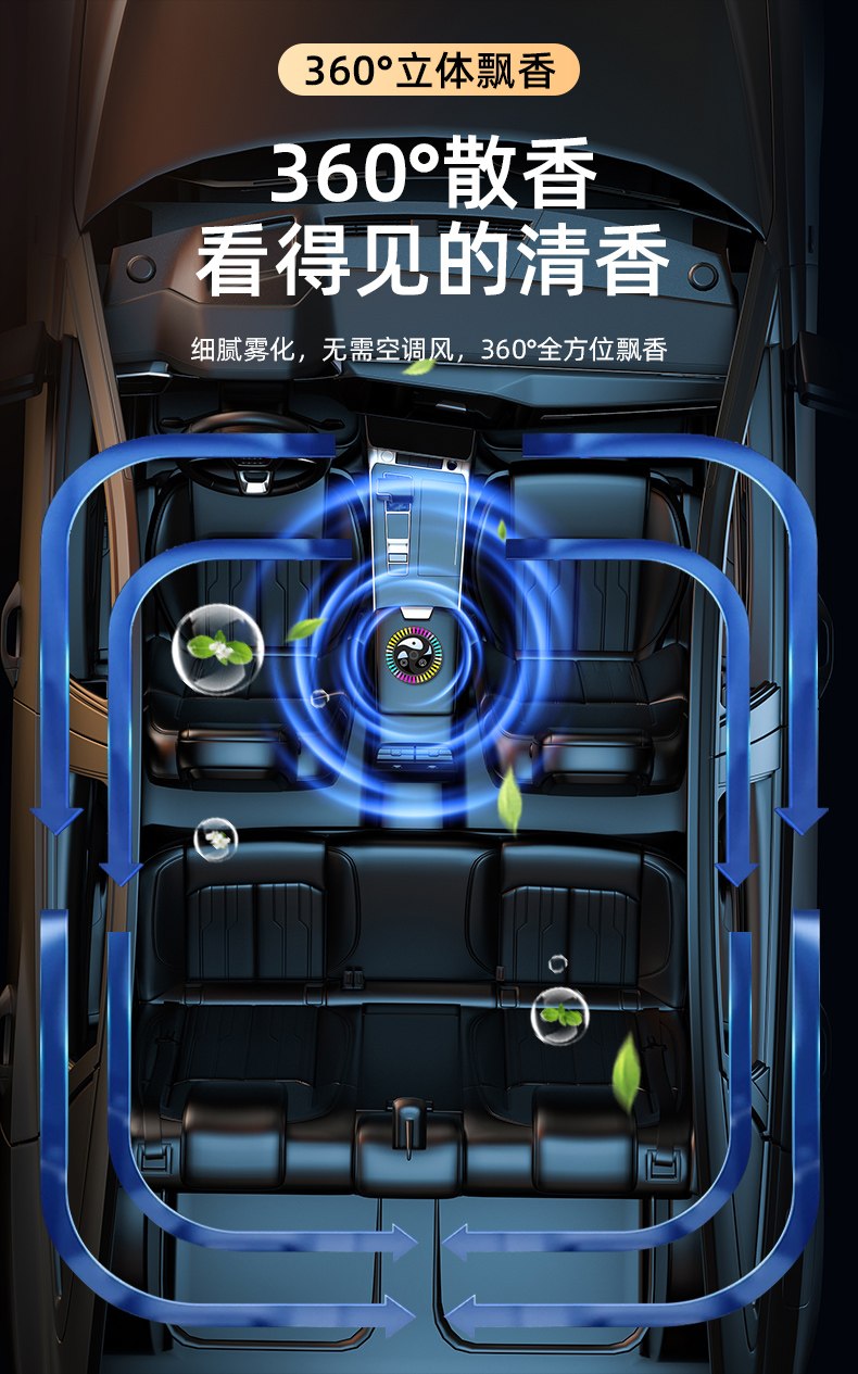 5.360 ° wangian tiga dimensi, wangian 360 ° yang kelihatan, atomisasi halus, tidak memerlukan penghawa dingin, 360 ° arus harum